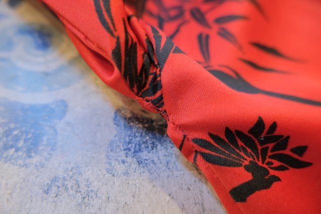 目を惹く赤×水色のヨーク切り返しやパールスナップボタンがお洒…