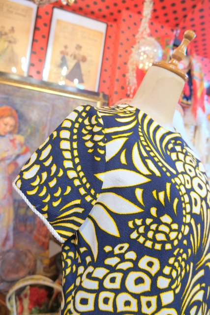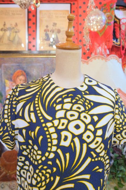 ヨーロッパ古着70sヴィンテージレトロマリンワンピース