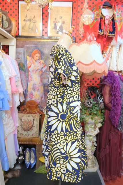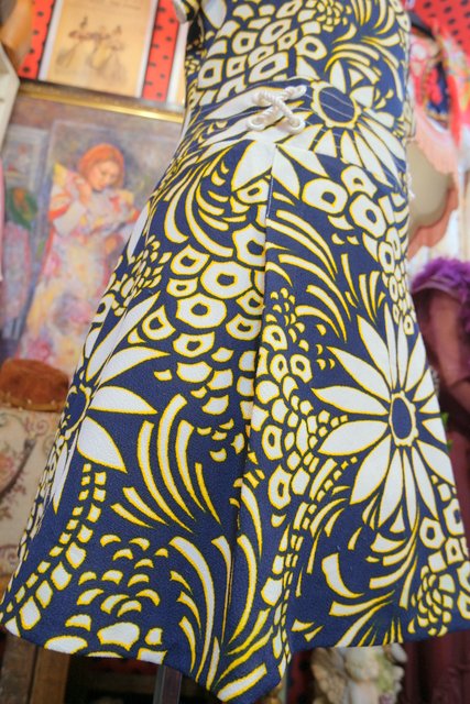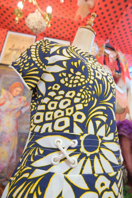 インパクトたっぷりの花柄プリントに袖先やウエストのロープデザインが可愛らしい1970年代頃のヨーロピアンヴィンテージレトロワンピース