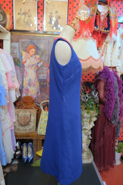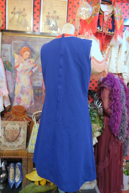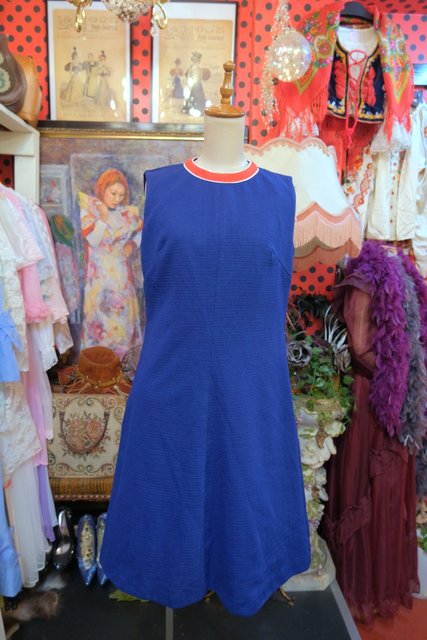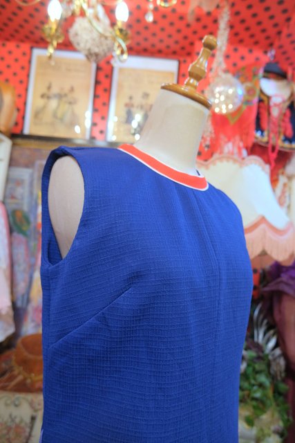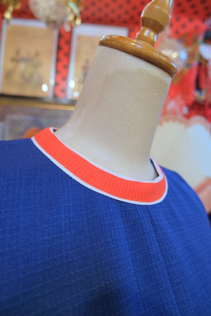 ネイビーベースに赤×白のネックデザインがお洒落な1960~70年代頃のヨーロピアンヴィンテージレトロワンピース