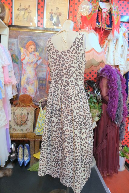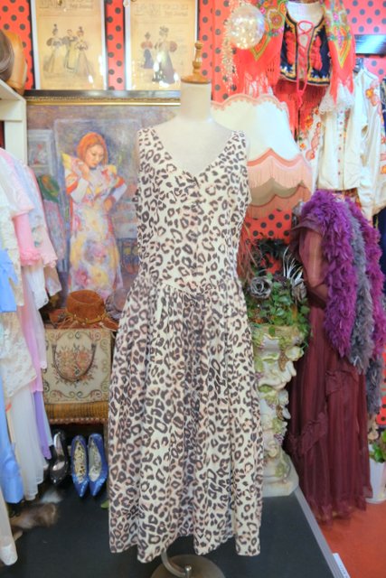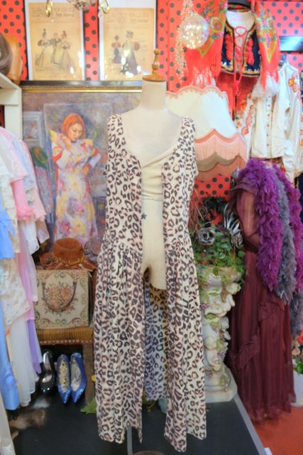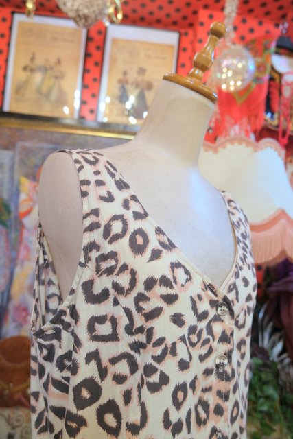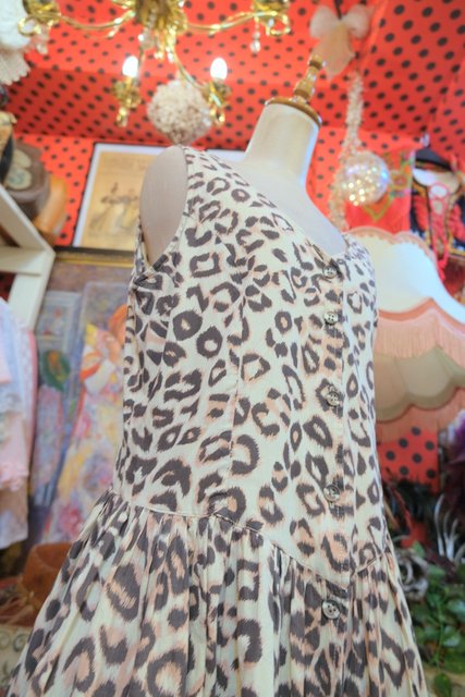 エレガントにもロックな印象にもなるレオパード柄に前開きロングベストで着用してもカッコいい1980年代頃のヨーロピアンヴィンテージワンピース