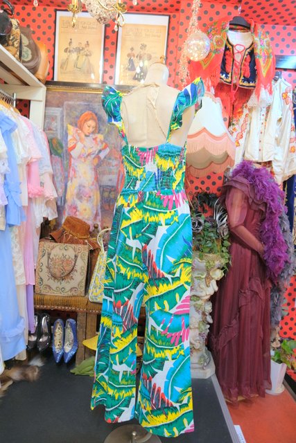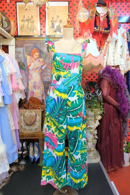 ヨーロッパ古着カラフルボタニカル柄サロペット