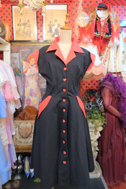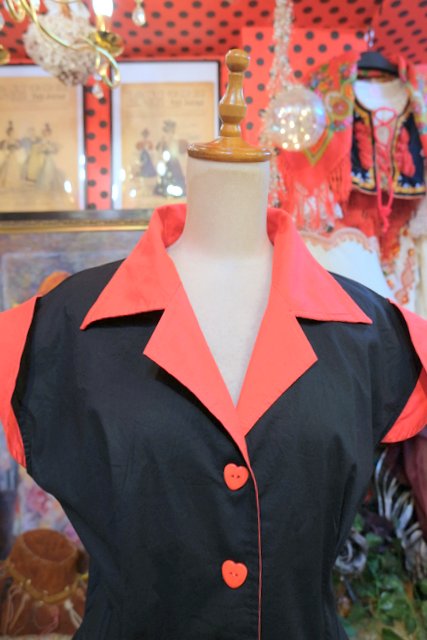 ヨーロッパ古着ロカビリーハートボタンワンピース