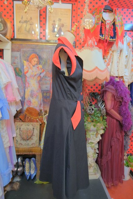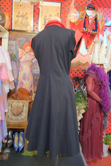 大人モードな赤×黒の切り替えデザインにハートボタンやフレアスカートが可愛らしいヨーロピアンピンナップガールワンピース