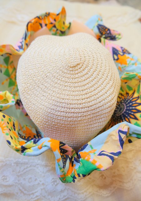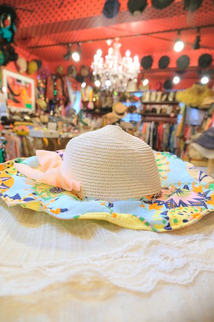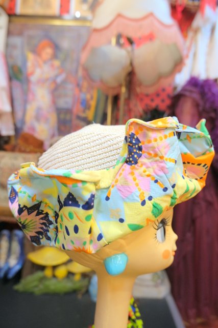 ヨーロッパ古着カラフルポップ変形麦わら帽子