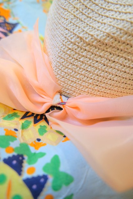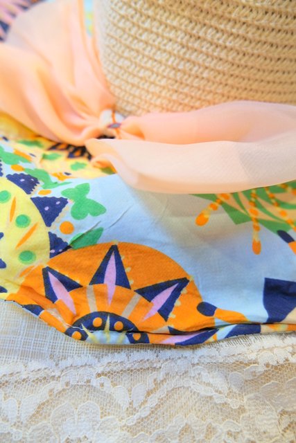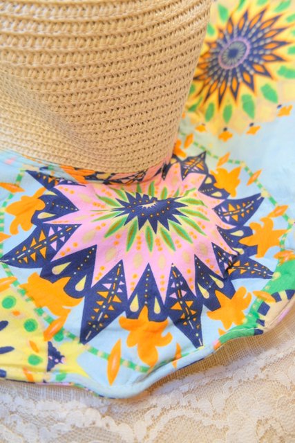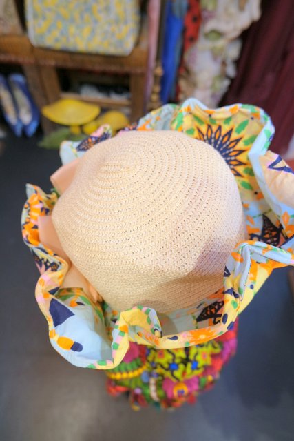 カラフルサイケデリック模様のアレンジできるワイヤー入りツバ×大きなシフォンリボンが可愛らしいヨーロピアン麦わら帽子