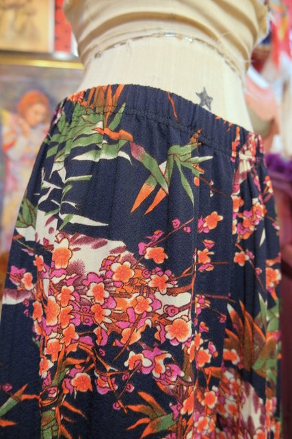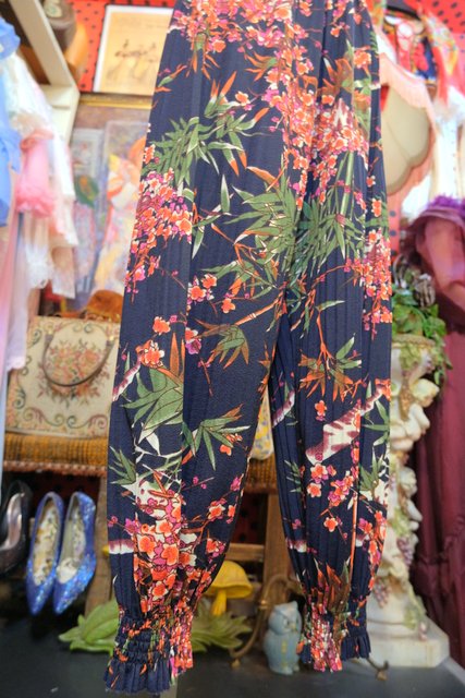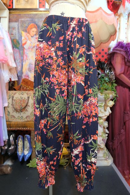 梅や笹の和モダンなプリントに膨らみが強調される裾のゴムデザインがお洒落で個性的なヨーロピアンプリーツパンツ