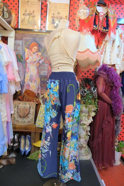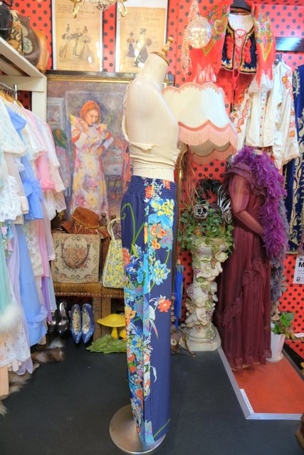 ヨーロッパ古着エレガントカラフル花柄フレアパンツ