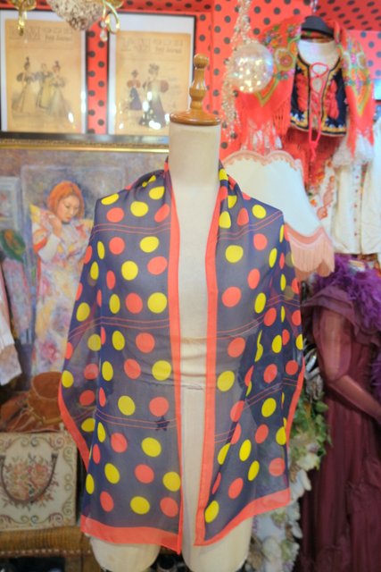 ヨーロッパ古着レトロポップドット柄シフォンスカーフ