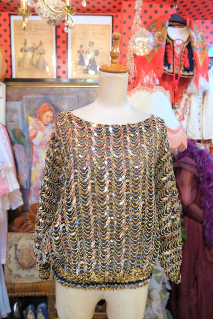 ヨーロッパ古着80sヴィンテージスパンコールトップス