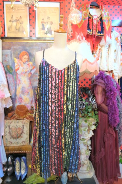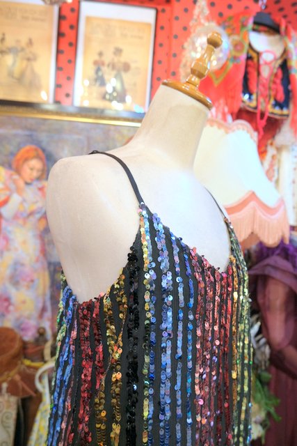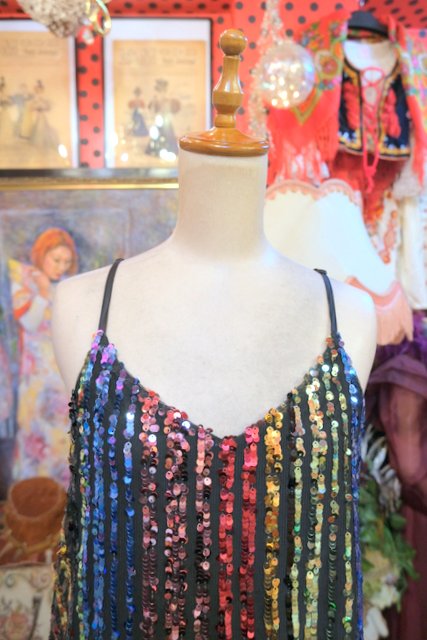 ヨーロッパ古着カラフルスパンコールキャミワンピース