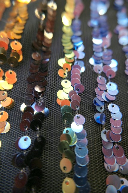 キラキラ輝く数種類のカラフルなスパンコールデザインが魅力的なヨーロピアンパーティーミニドレス