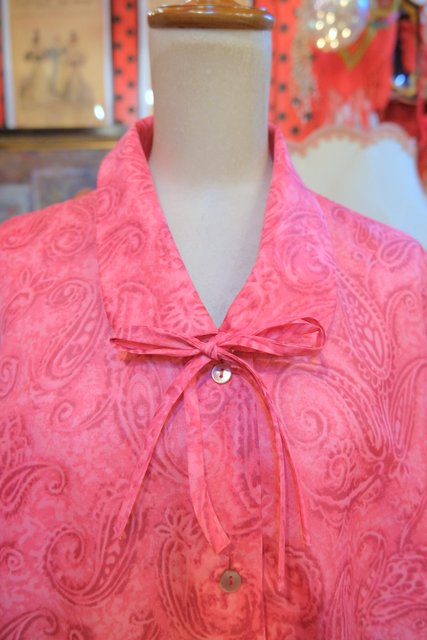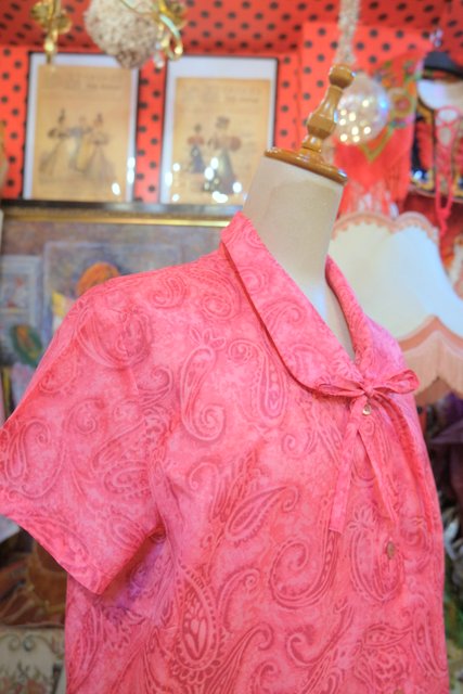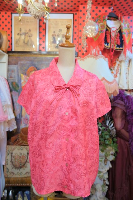アートなペイズリー柄に丸襟×リボンデザインが可愛らしい1950~60年代頃のヨーロピアンヴィンテージブラウス