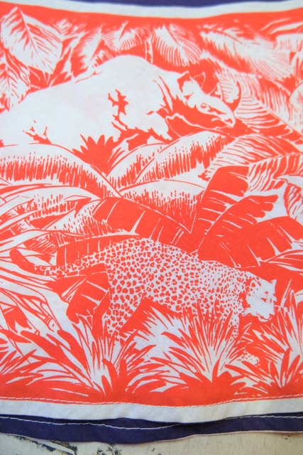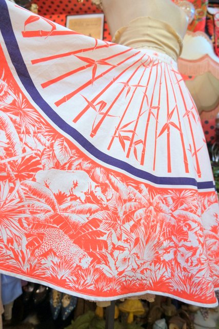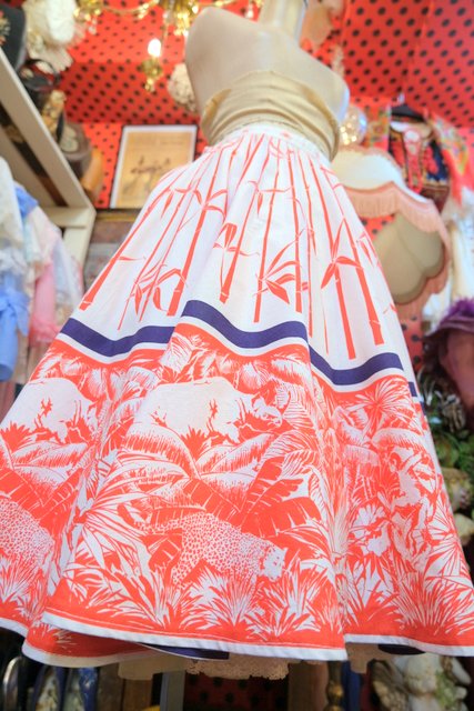 和モダンな笹×サイやヒョウのサファリ柄プリントが個性的な1950~60年代頃のヨーロピアンヴィンテージサーキュラースカート