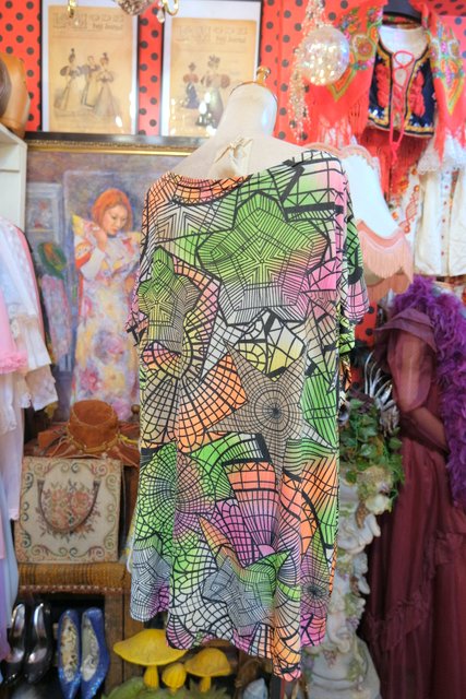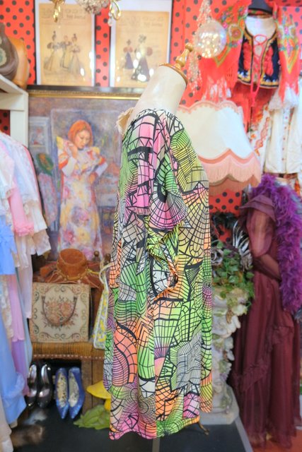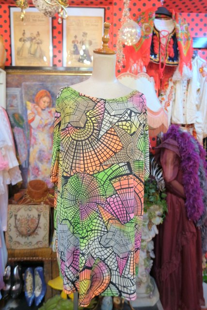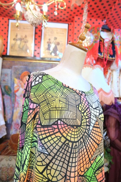 テロっとした落ち感にカラフルサイケデリックなジオメトリック模様が魅力的なヨーロピアンオーバーサイズトップス