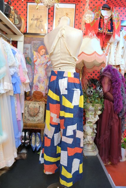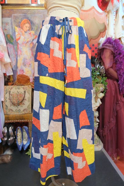 ヨーロッパ古着カジュアルモードカラフルフレアパンツ