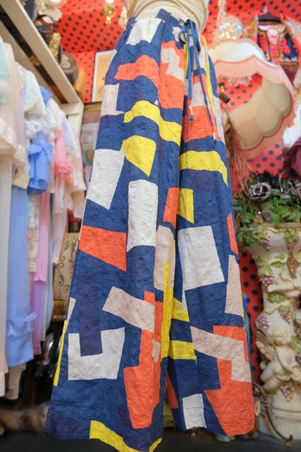 カラフルポップなジオメトリック柄にゆったりシルエットが魅力的なヨーロピアンフレアパンツ