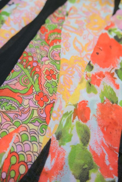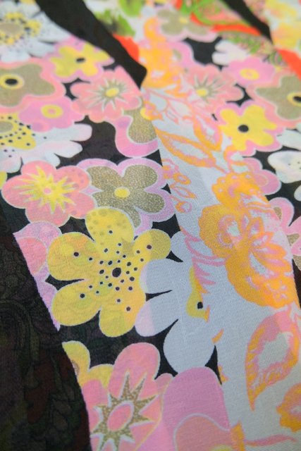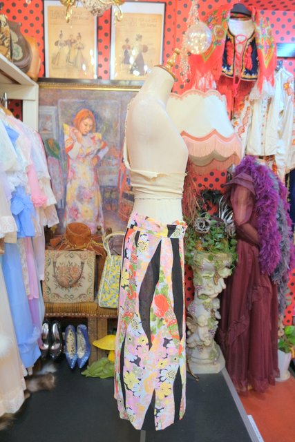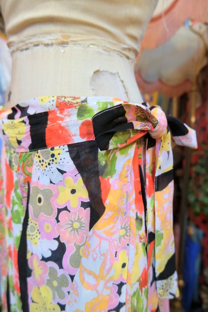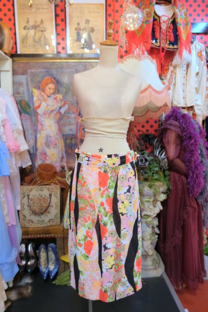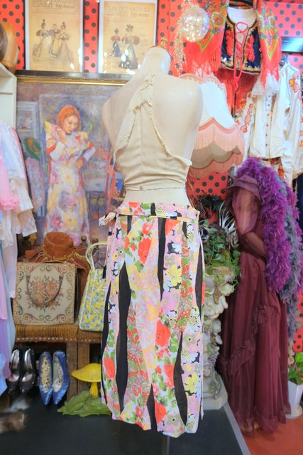 カラフルでレトロモダンな着物風パッチワークプリントが魅力的なヨーロピアンヴィンテージラップスカート