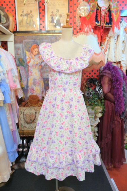 ヨーロッパ古着70sヴィンテージガーリー花柄ワンピース