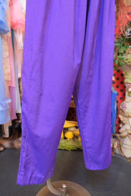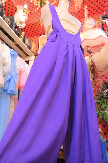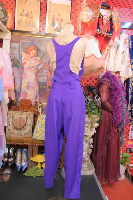 個性的なパープルベースにタック入りのウエストデザインがお洒落な1980年代頃のカナダ製ヴィンテージサロペット
