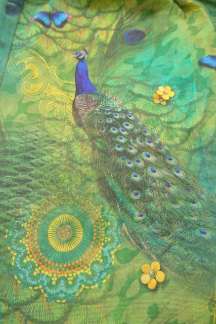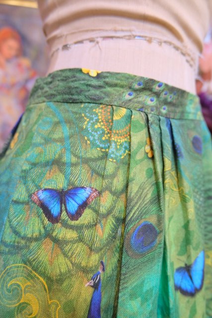 グリーングラデーションカラーに孔雀や蝶デザインが目を惹くヨーロピアンフレアスカート