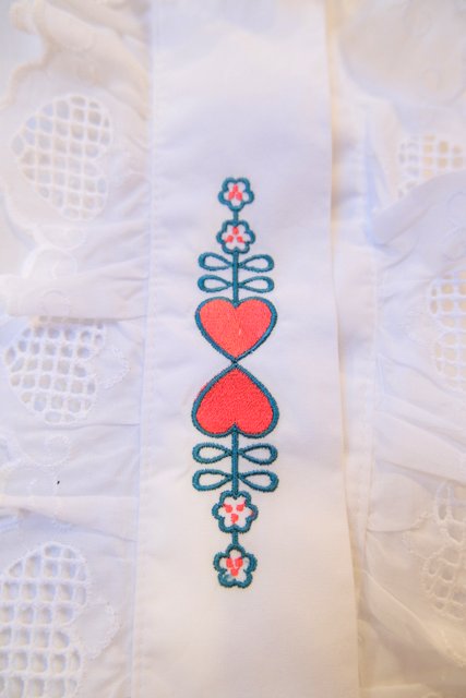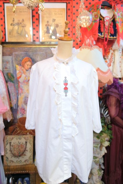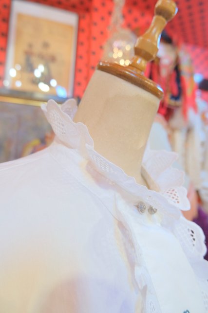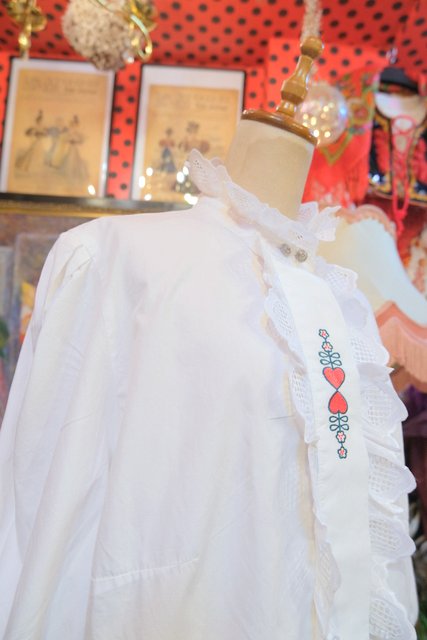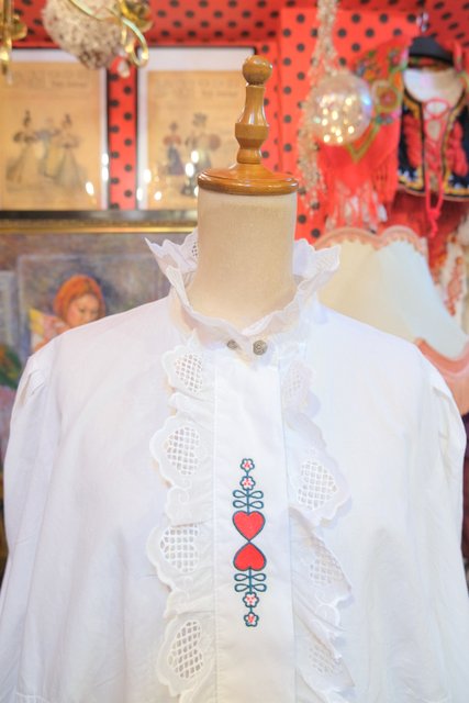 ハートの刺繍やハートレースフリルデザインが乙女心をくすぐる1980年代頃のヨーロピアンヴィンテージチロルブラウス