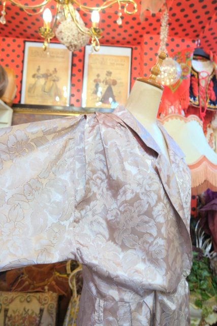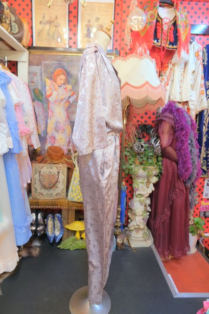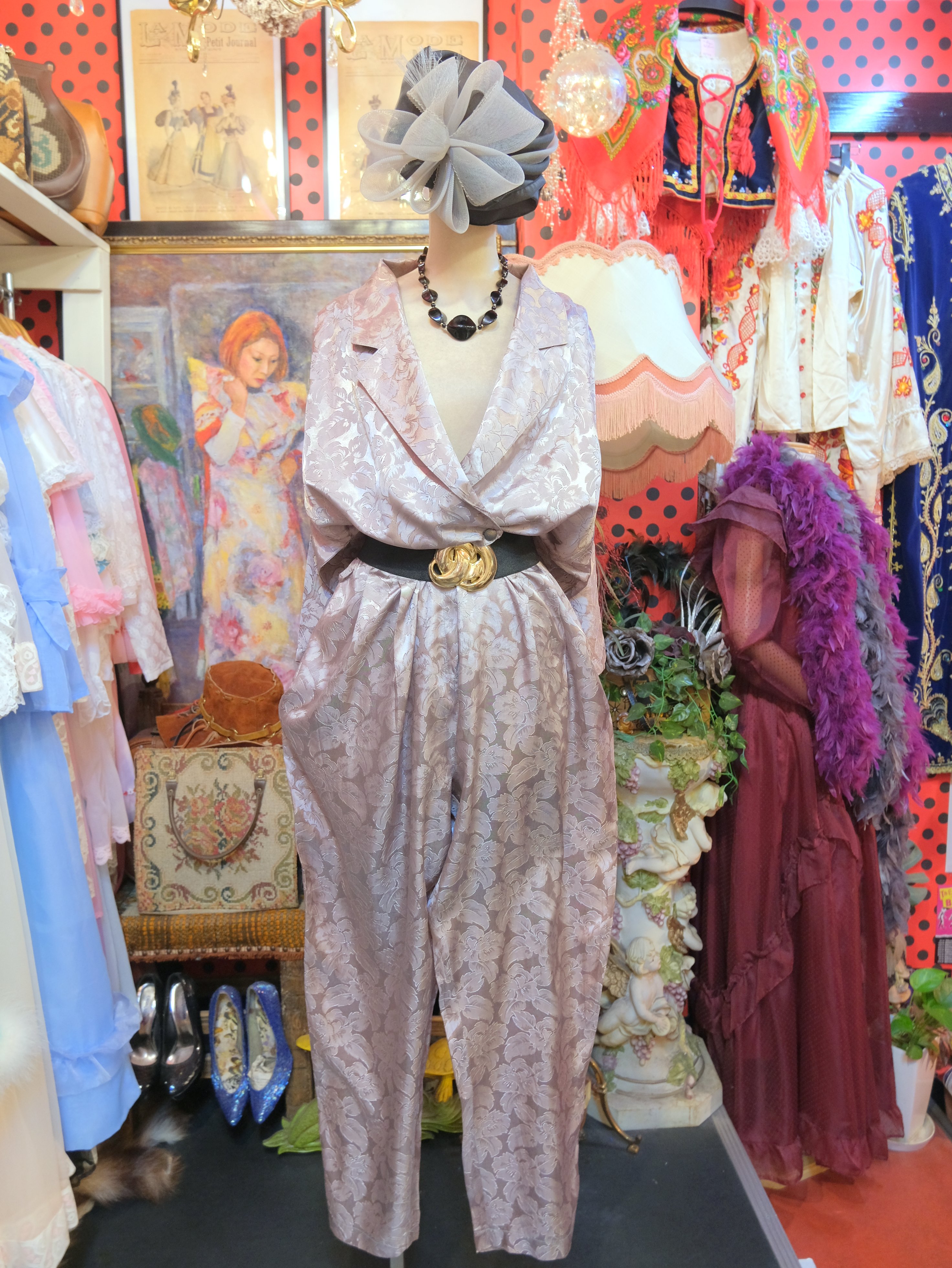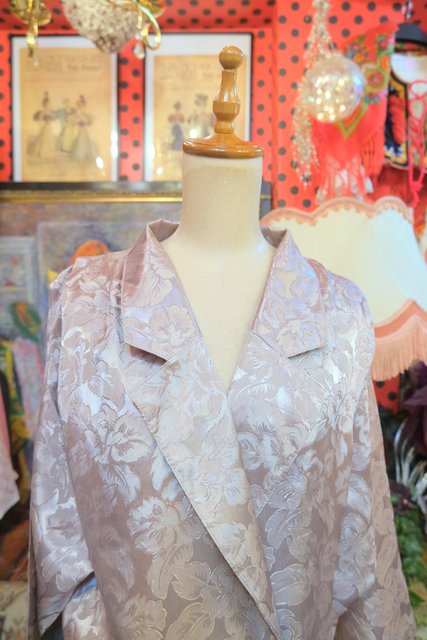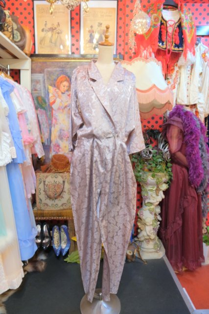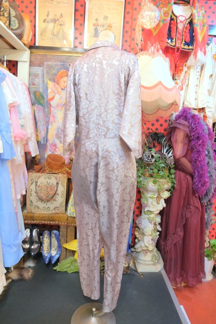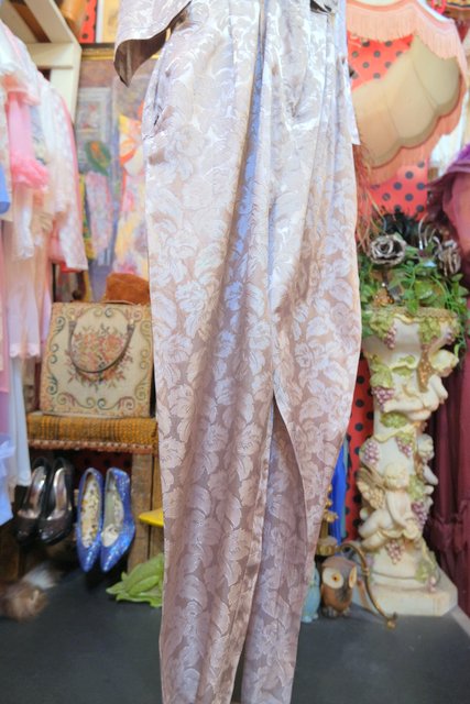 光沢があるエレガントな花柄生地にタック入りのショルダー×ドルマンスリーブデザインがカッコいい1980年代頃の旧西ドイツ製ヴィンテージジャンプスーツ