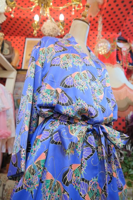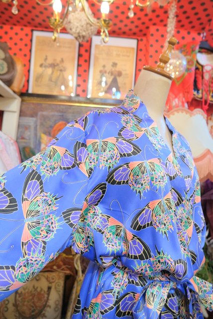 ヨーロッパ古着サイケデリック蝶プリントガウン羽織
