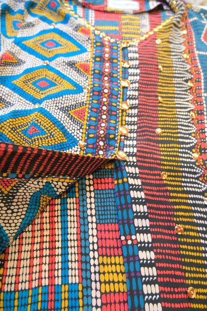 ヨーロッパ古着カラフルエスニックシルクシャツ羽織