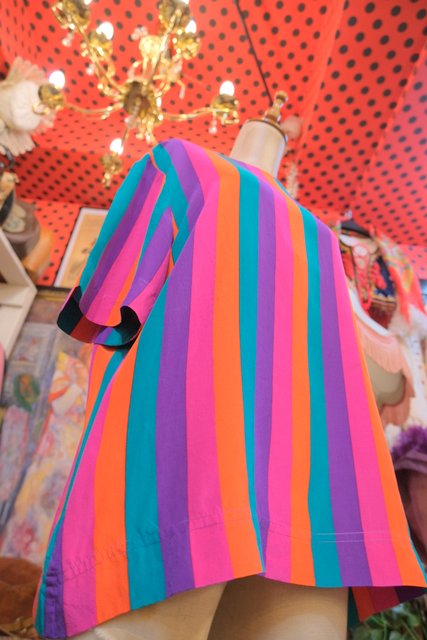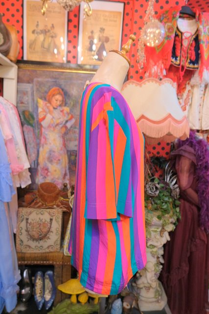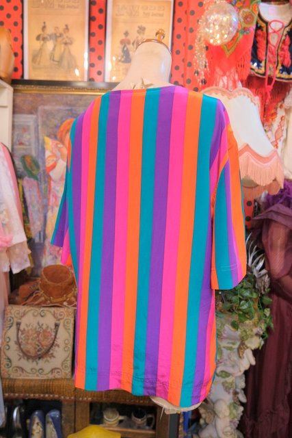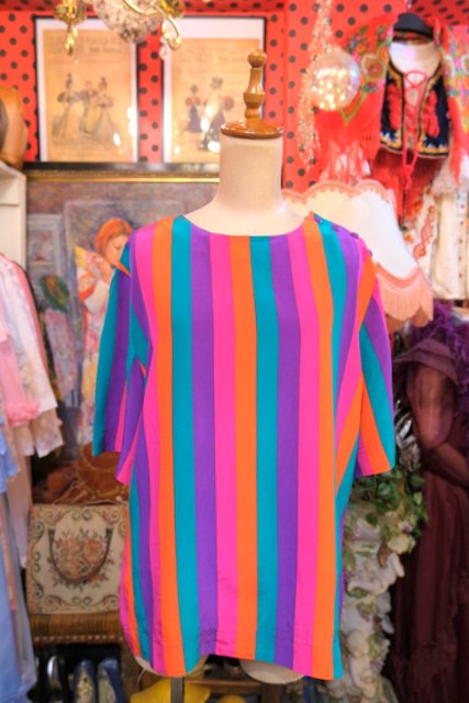 ヨーロッパ古着80sカラフルポップストライプトップス