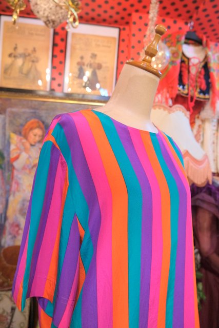 ビビッドなストライプに滑らかな肌触りのシルク生地が魅力的な1980年代頃のヨーロピアンカラフルカットソー