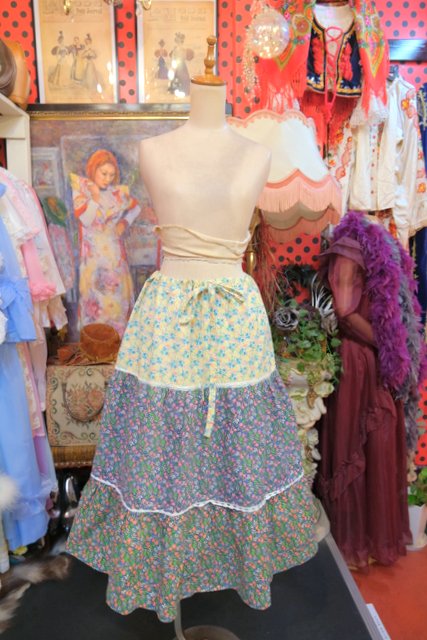 ヨーロッパ古着70sヴィンテージ花柄ティアードスカート