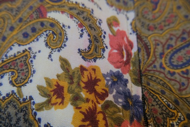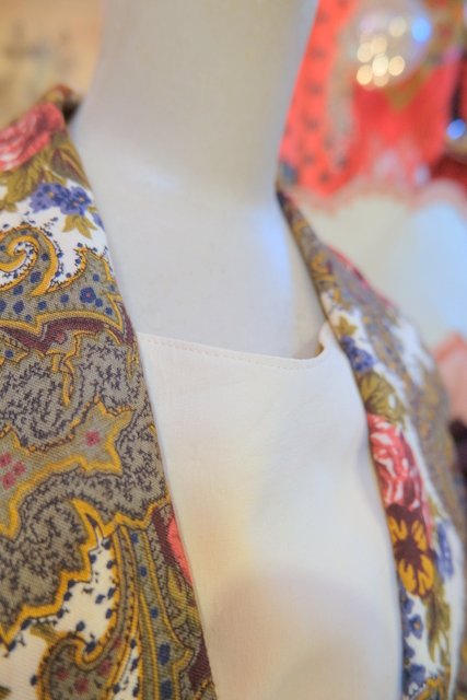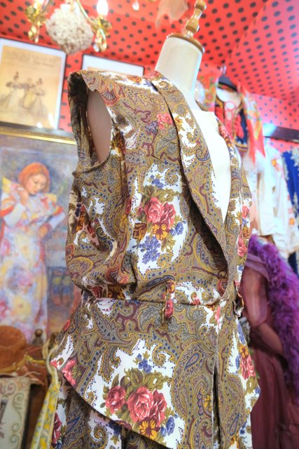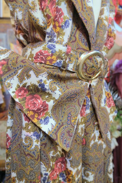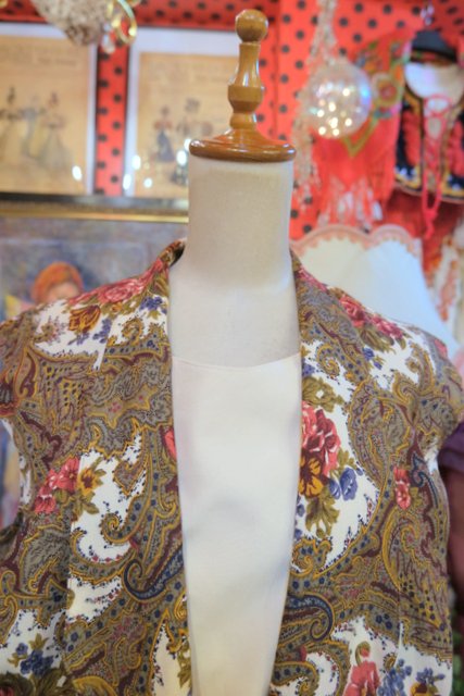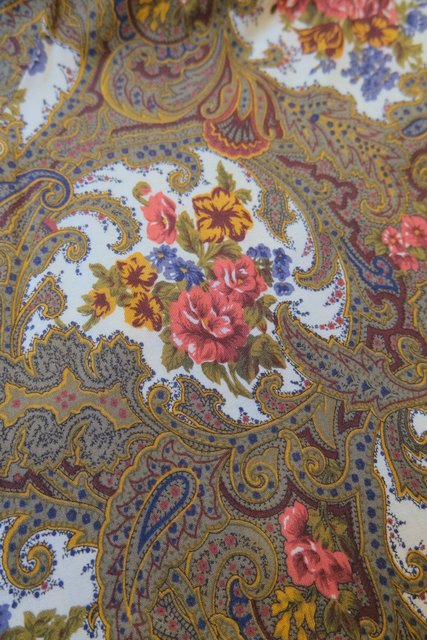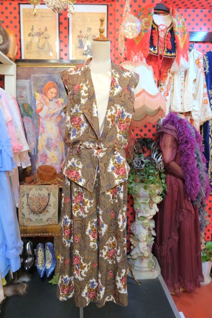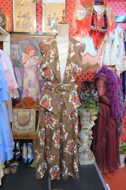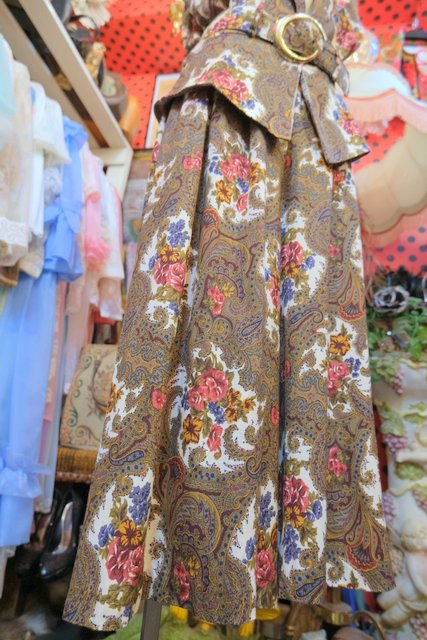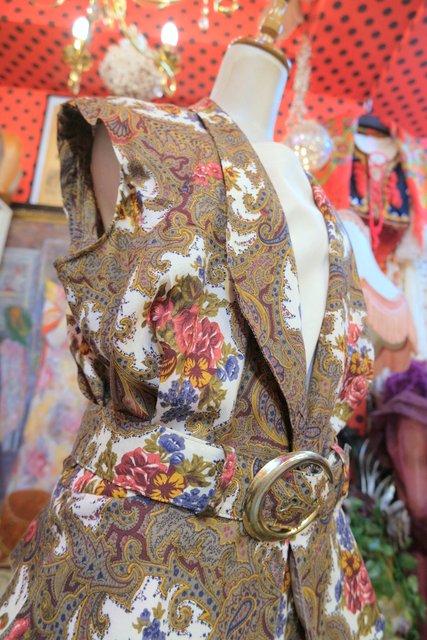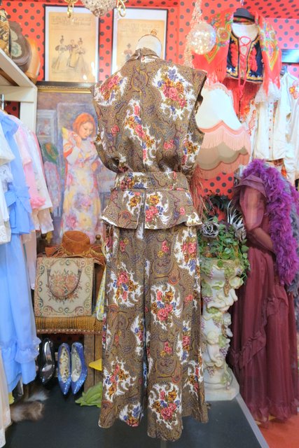 レトロなペイズリー柄×エレガントな花柄プリントにペプラムデザインやフレアパンツがお洒落な1980年代頃のヨーロピアンヴィンテージジャンプスーツ