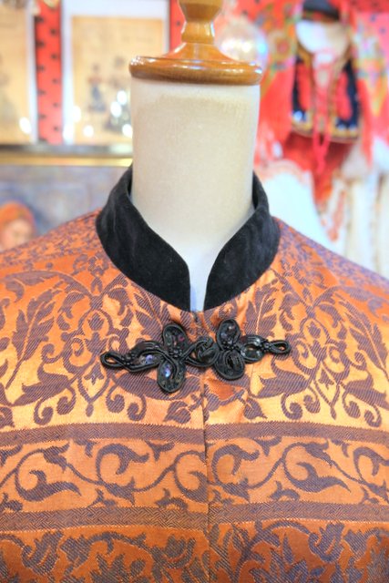 高級感漂うベロアマオカラーにエキゾチックな総柄×ビジューデザインアジアンノットボタンが素敵なヨーロピアンチャイナジャケット