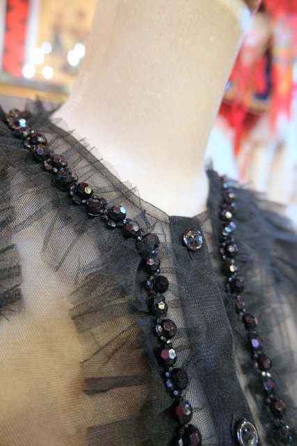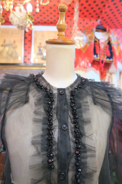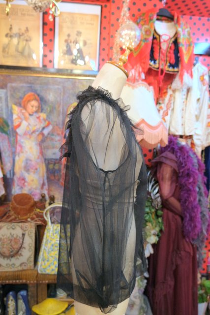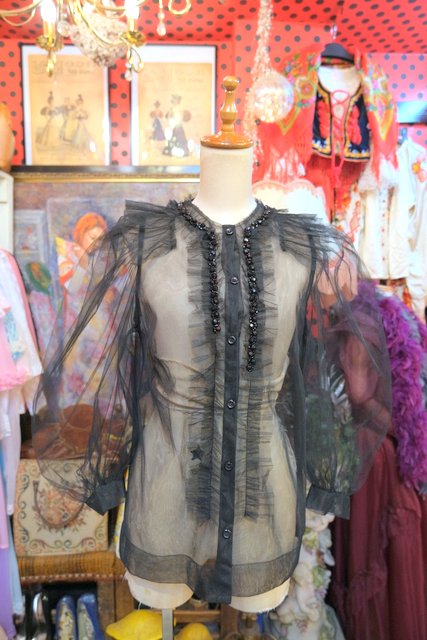 ヨーロッパ古着フリルパフスリーブチュールブラウス