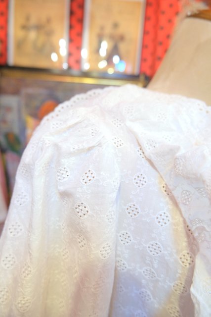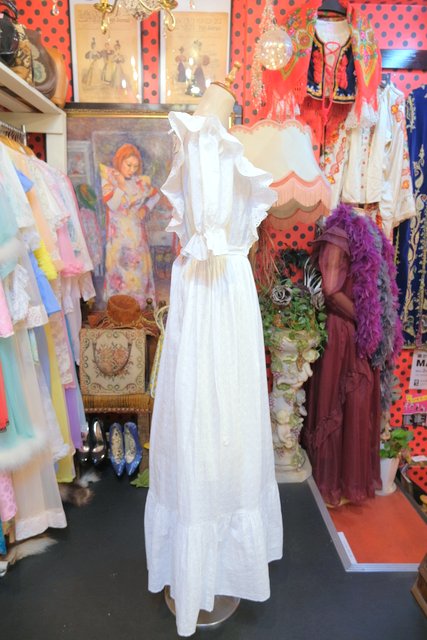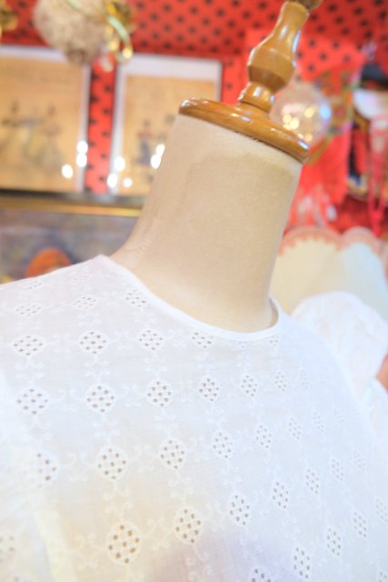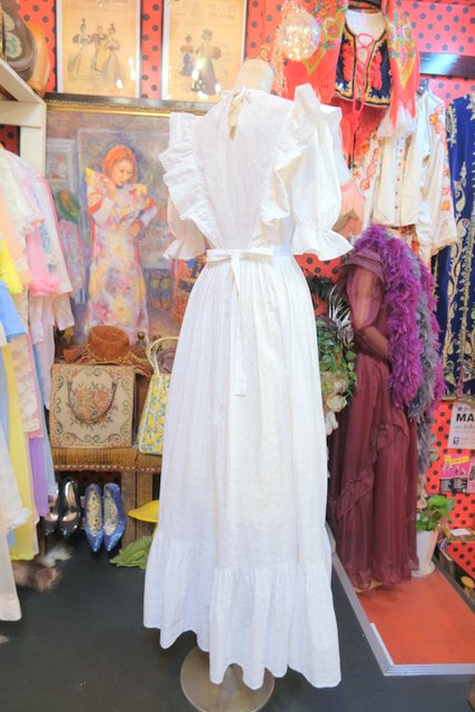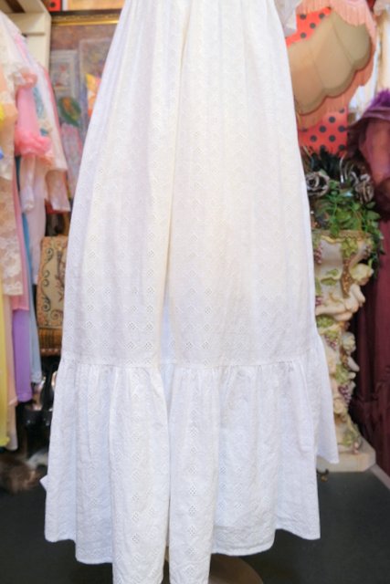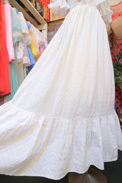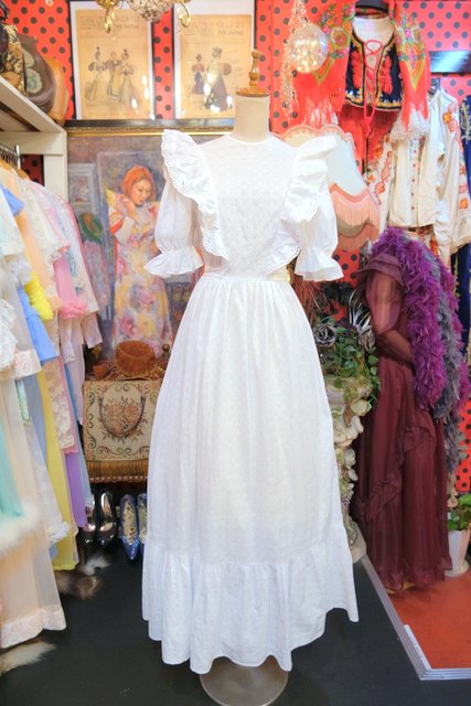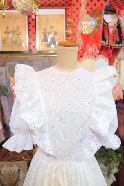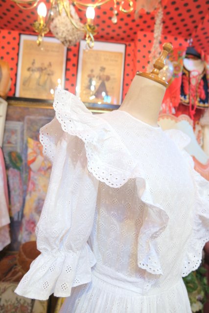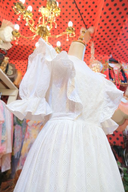 レトロ模様のカットワークレースに花柄レース付きのフリルやパフスリーブが乙女心をくすぐる1960~70年代頃のヨーロピアンヴィンテージワンピース