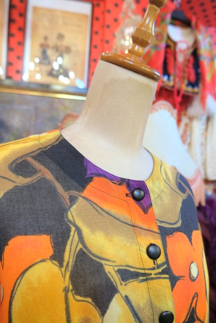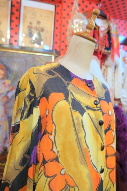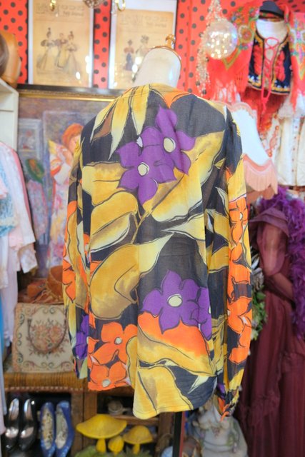透け感があるガーゼ風な生地に大胆な花柄プリントが目を惹く1980年代頃のヨーロピアンヴィンテージシャツ