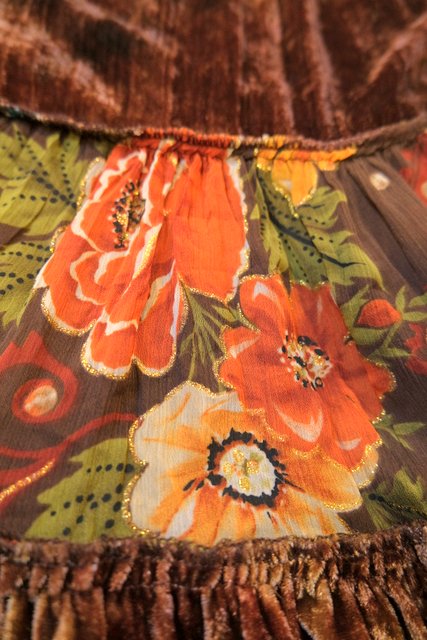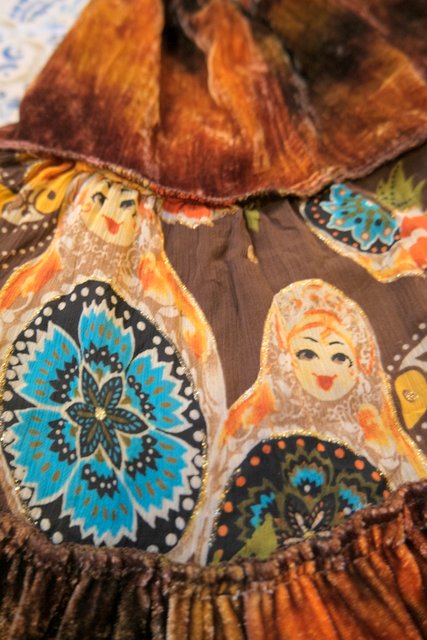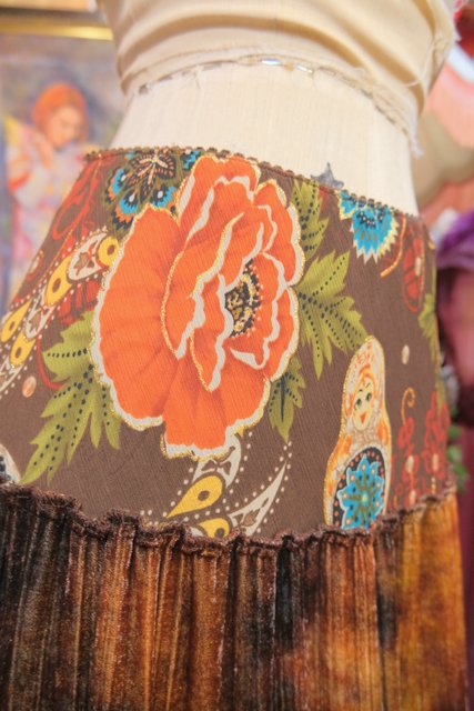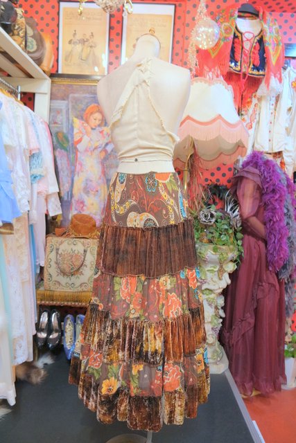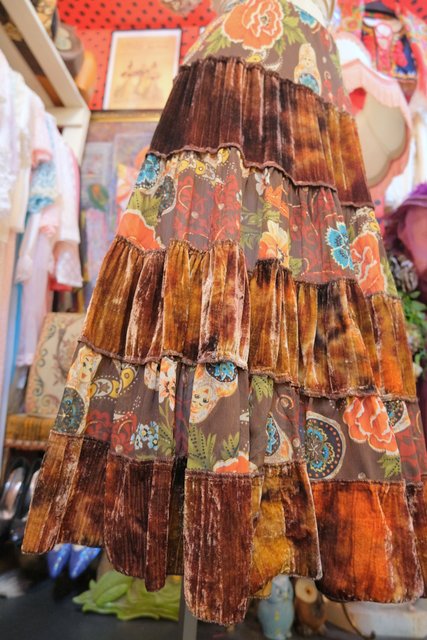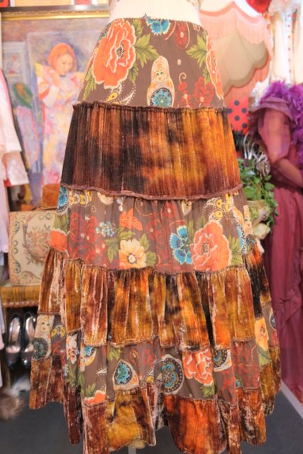 ゴールド混じりのマトリョーシカ×花柄生地に高級感漂うベロアパッチワークデザインが魅力的なヨーロピアンティアードスカート