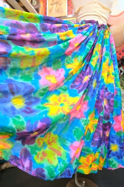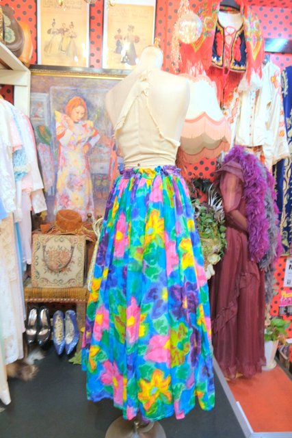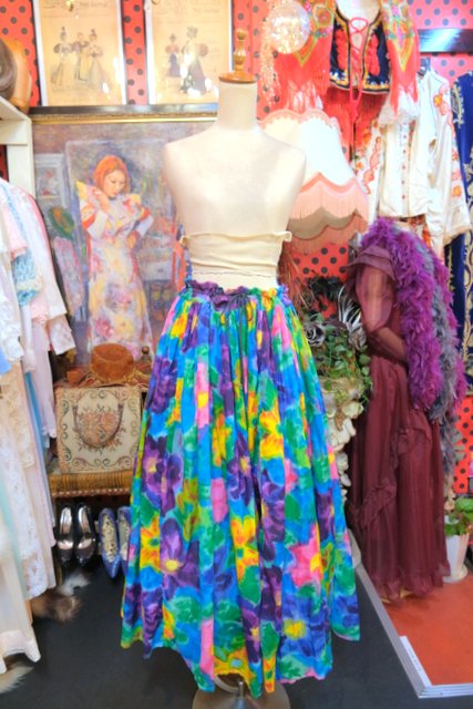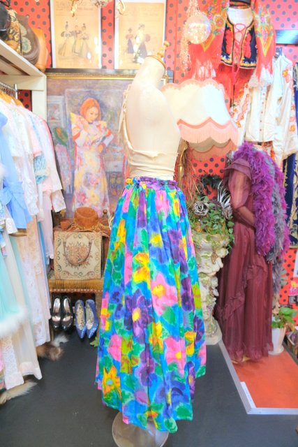 目を惹く色鮮やかでアートな花柄プリントが魅力的な1980年代頃のヨーロピアンヴィンテージスカート