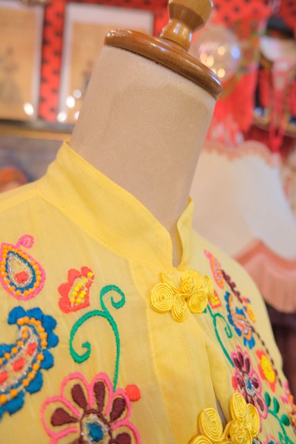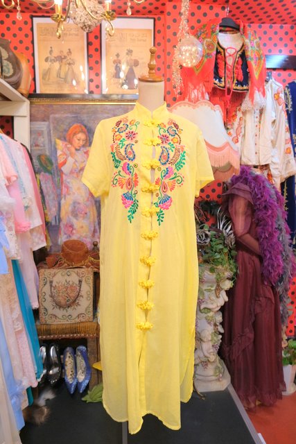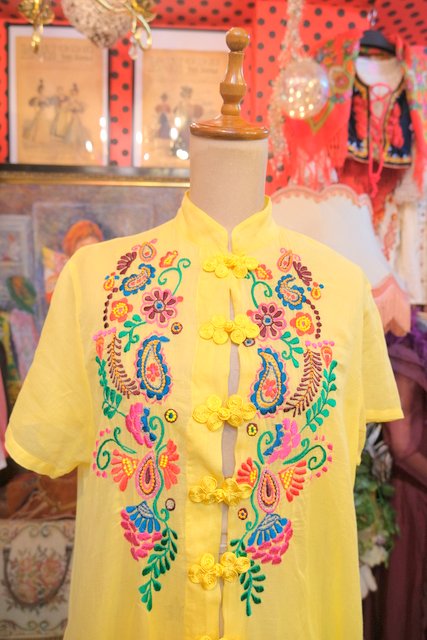 カラフルポップなペイズリーや花柄刺繍にレトロ感たっぷりのマオカラーやアジアンノットボタンが可愛いヨーロピアンエスニックワンピース