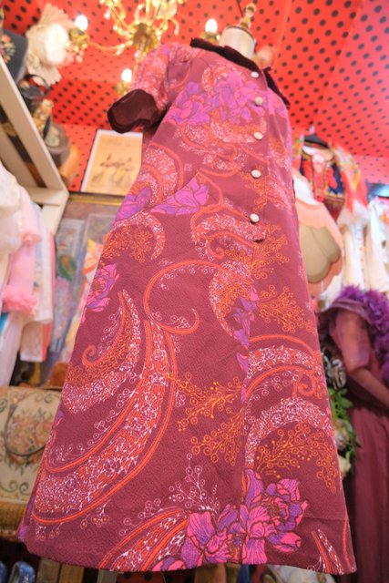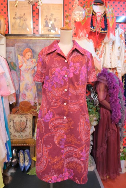 エレガンスな花柄にレトロ感たっぷりの総柄が魅力的な1970年代頃のヨーロピアンヴィンテージワンピース