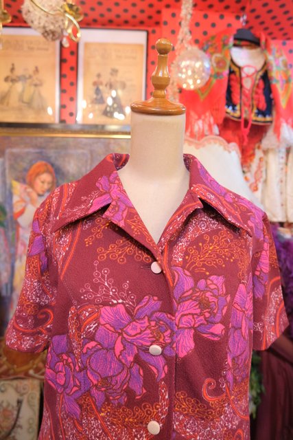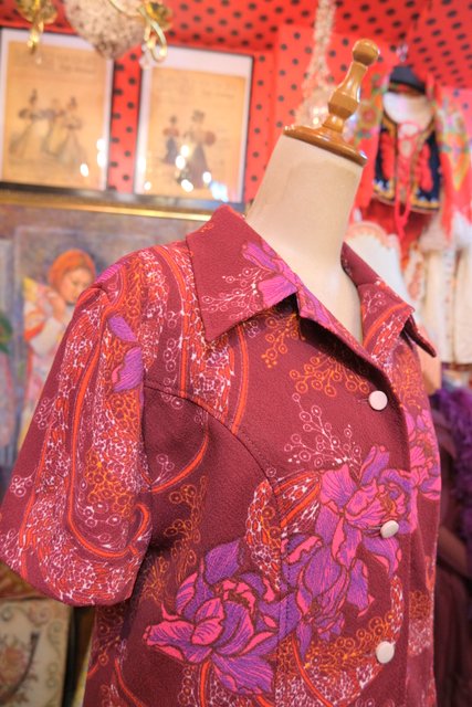 ヨーロッパ古着70sフランス製レトロポップ水玉シャツ