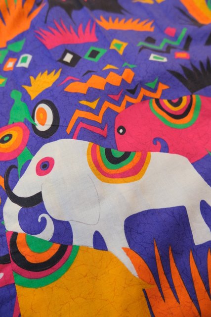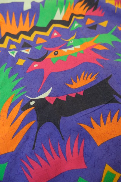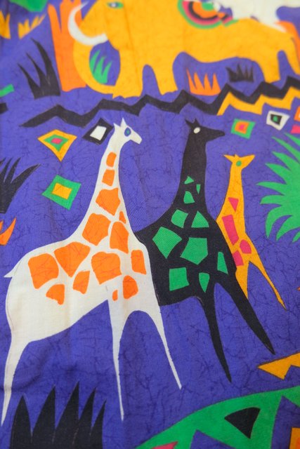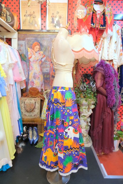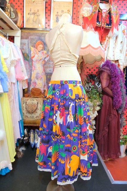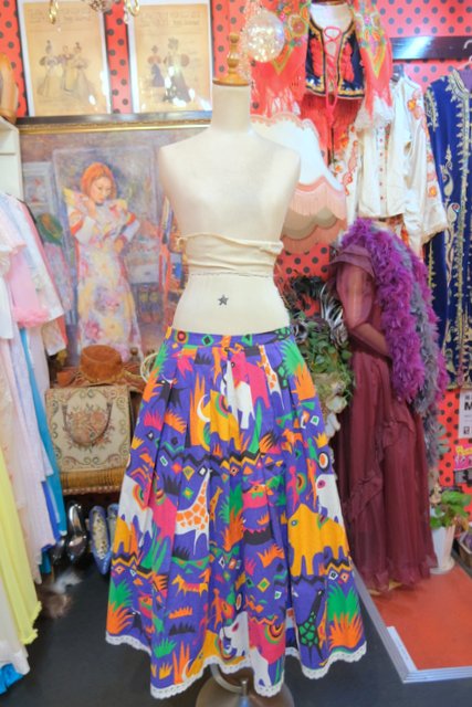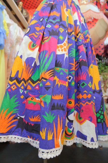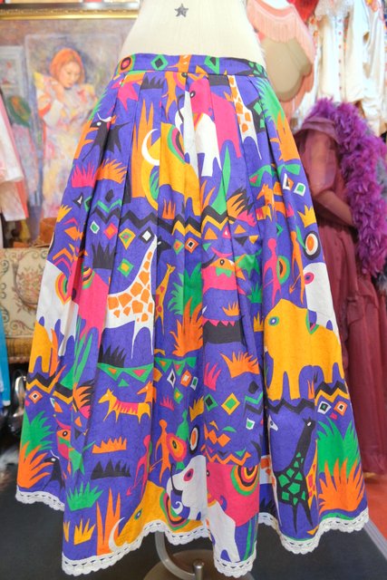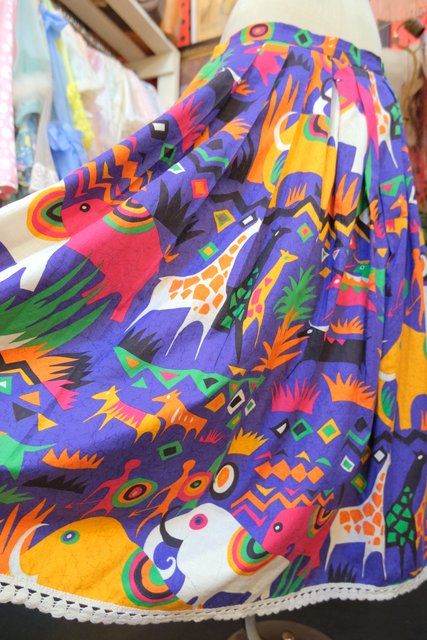 カラフルポップなゾウやキリンなどのサファリ柄が目を惹く1980年代頃のヨーロピアンヴィンテージスカート
