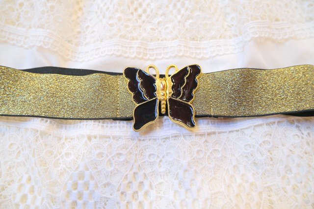 黒×ゴールドのエレガントな蝶バックルにキラキラ輝くゴールドラメラバーが素敵なヨーロピアンパーティーベルト