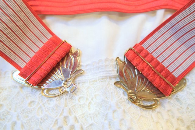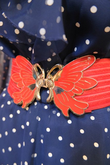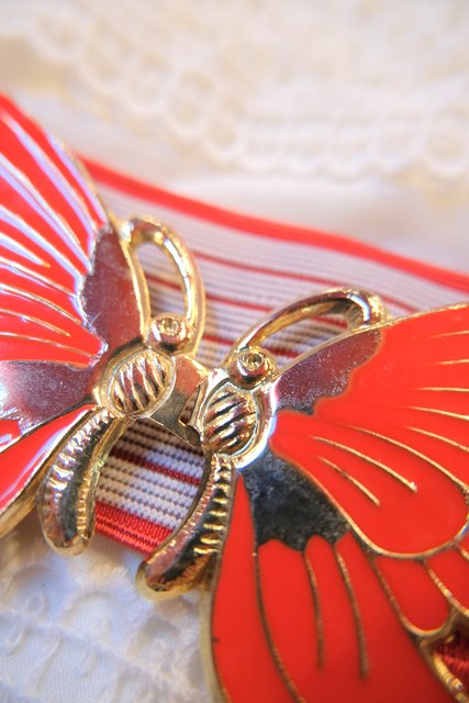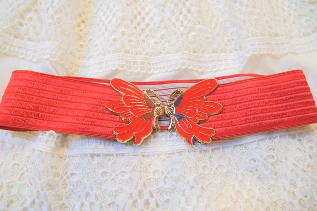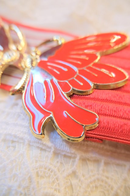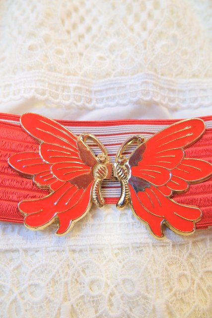 赤×ゴールドの蝶バックルにアクセントのポイントにおススメな赤ラバーが魅力的なヨーロピアンウエストマークベルト
