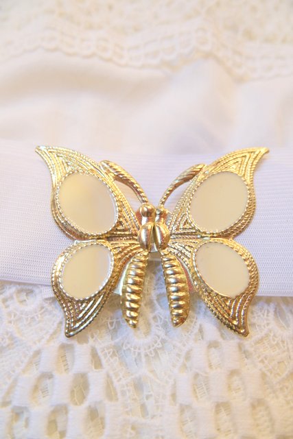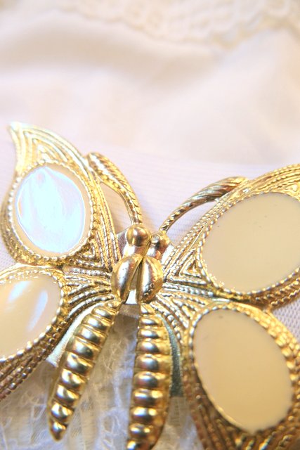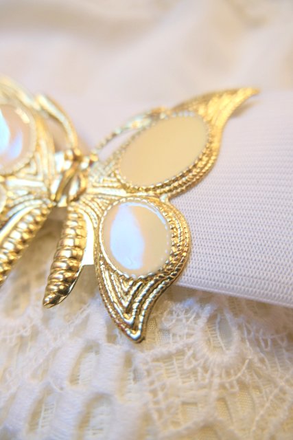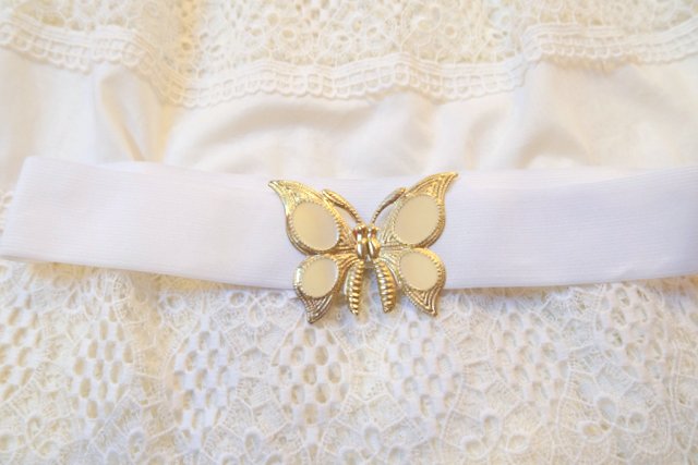 エレガントガーリーなクリーム×ゴールドの蝶バックルが魅力的なヨーロピアンウエストマークベルト