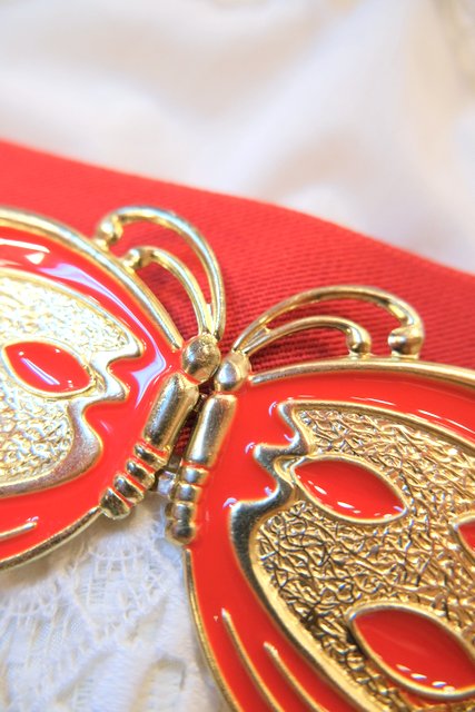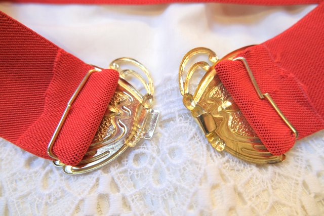 赤×ゴールドのエレガントゴージャスな蝶バックルが魅力的なヨーロピアンラバーベルト