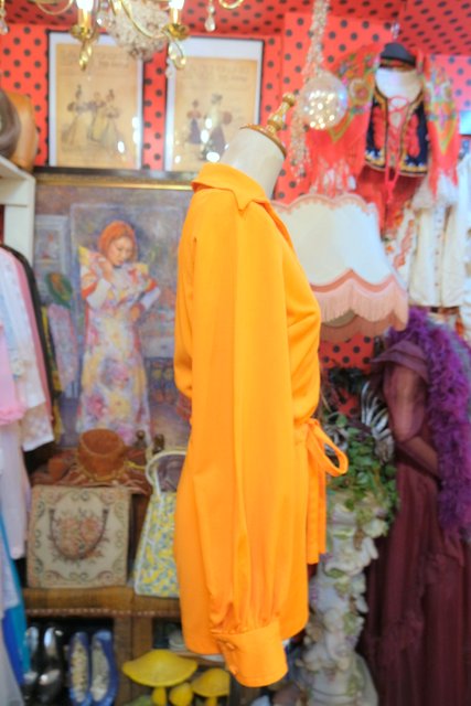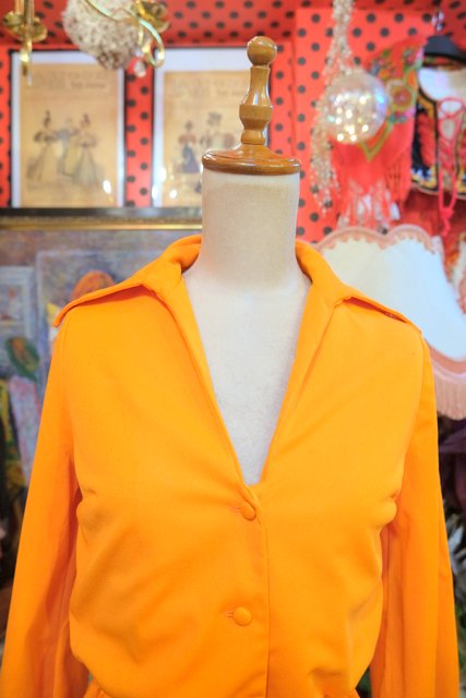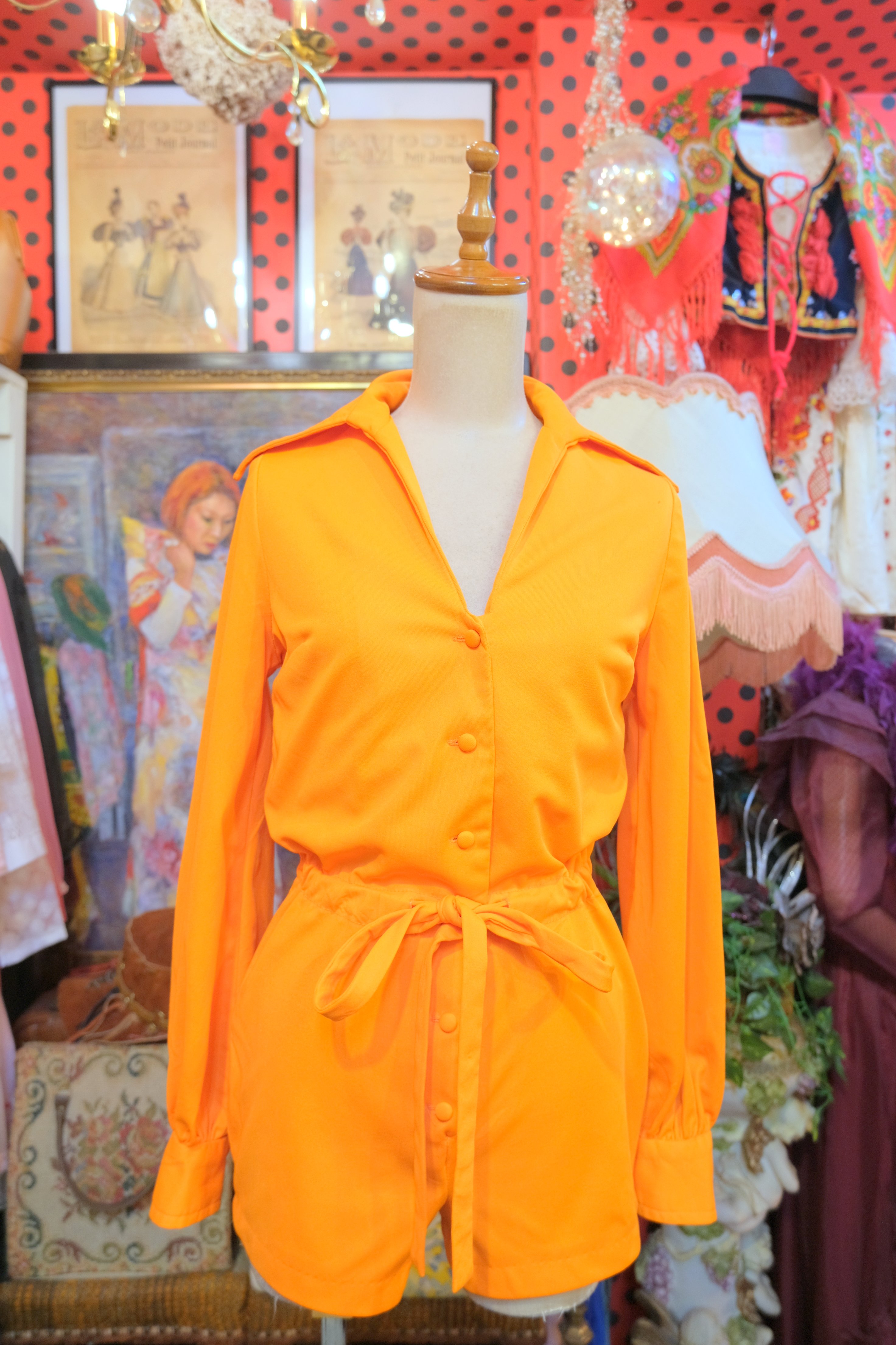 色鮮やかなオレンジベースにショート丈がカッコ可愛い1970年代頃のヨーロピアンヴィンテージサロペット カラフルなタイツやウエスタンブーツと相性◎!