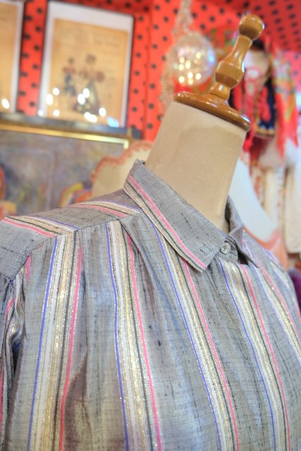 ヨーロッパ古着80sメタリックラメストライプシャツ