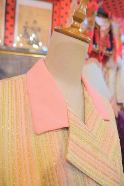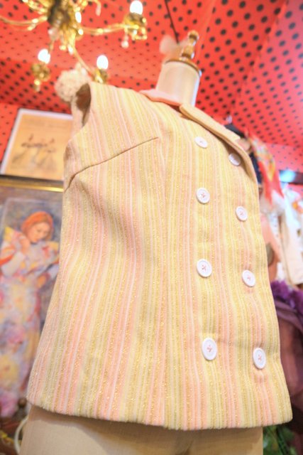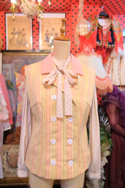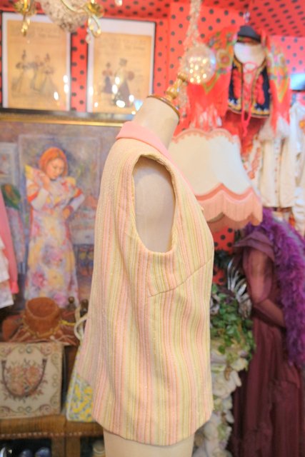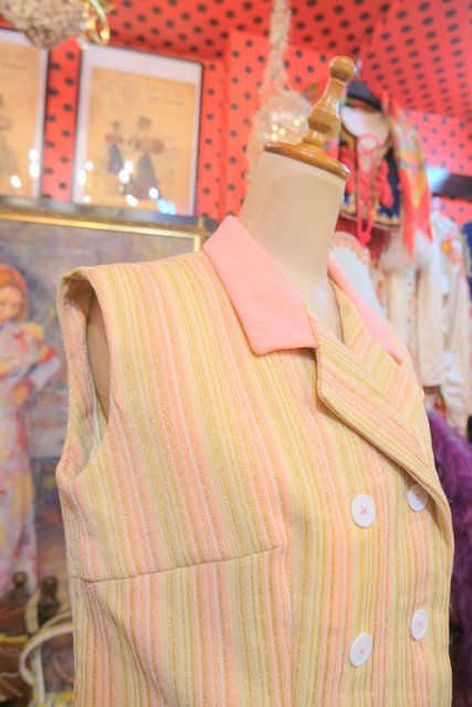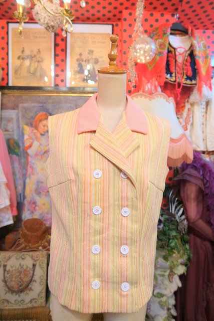 ピンク、ベージュベースにゴールドストライプがお洒落な1970年代頃のヨーロピアンヴィンテージベスト